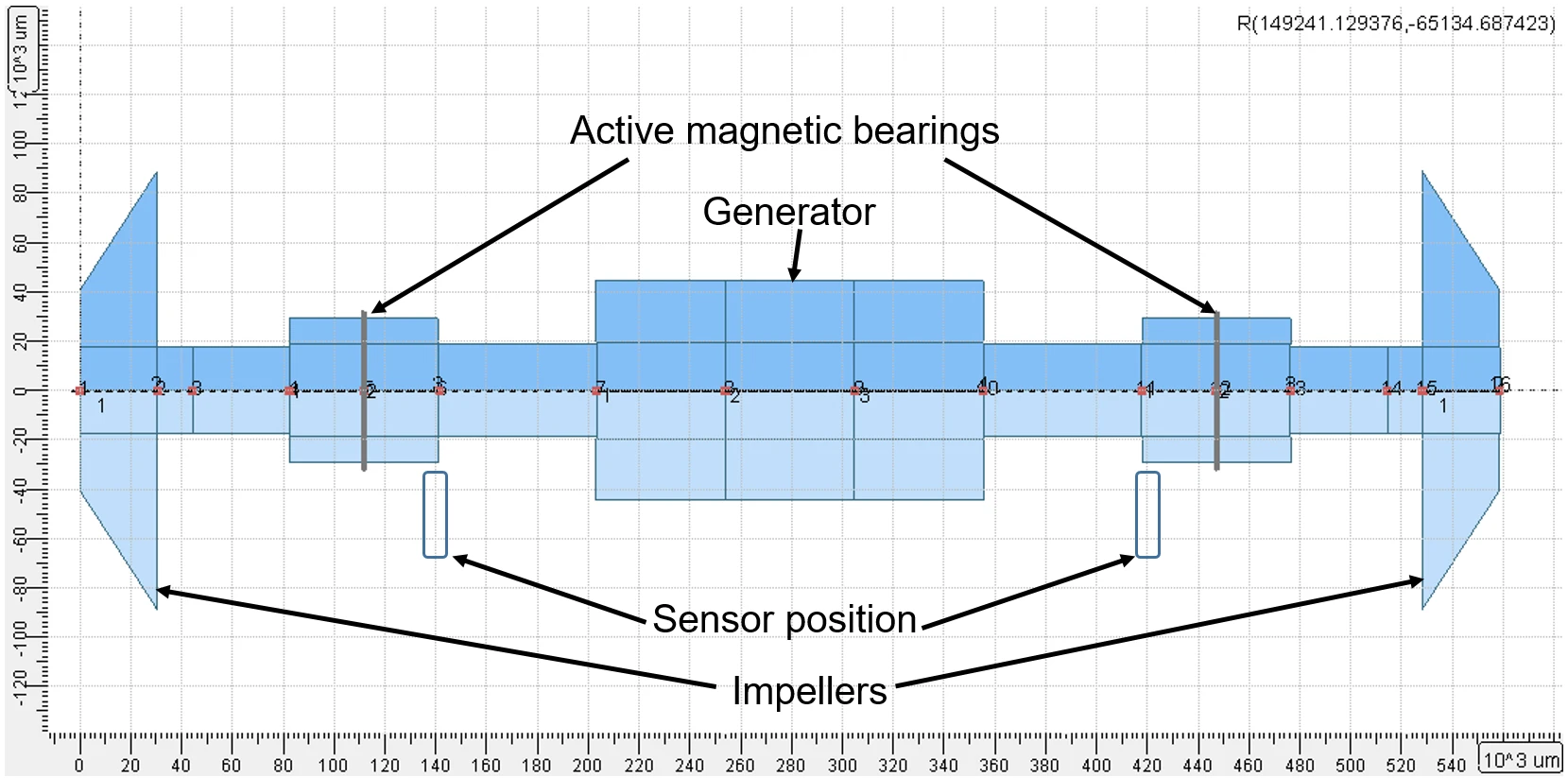 Although there are many examples of active magnetic bearing applications nowadays, this topic still holds various problems for engineers. Each active magnetic bearing unit requires the development of a unique control system algorithm and ensuring the reliable rotor dynamics of a turbomachine in active magnetic bearings with the non-resonant operation, small vibrations, and stable motion. AxSTREAM RotorDynamics™ provides its users with comprehensive modeling of the control system parameters and the dynamics of rotors in active magnetic bearings examining all the criteria of safe turbomachine operation.