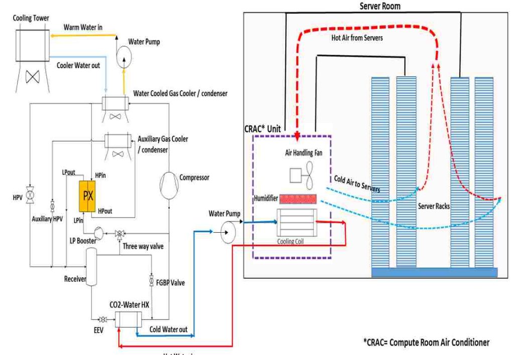 In the second part of the webinar, we will introduce the Trans-Critical Rotary Pressure Exchanger (PX), a novel machine developed by Energy Recovery, Inc., that can reduce data center cooling energy consumption by up to 25%. We will also discuss its performance benefits and how integrating PX into existing systems can improve efficiency (Figure 2). In addition, we will discuss how PX facilitates transition from traditional high global warming refrigerants like hydrofluorocarbons (HFC) to ultra-low global warming refrigerants like CO2, making the next generation of data centers environmentally sustainable.