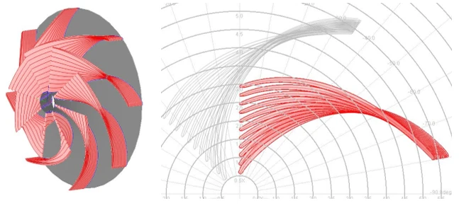 After the inverse design optimization of the pump, the resulting geometry was analyzed utilizing the 1D/2D direct streamline flow solver to confirm the key design performance numbers, mainly the head rise and the overall efficiency. Figure 4 shows the key performance parameters that resulted from the streamline analysis module in the code using 11 streamlines.